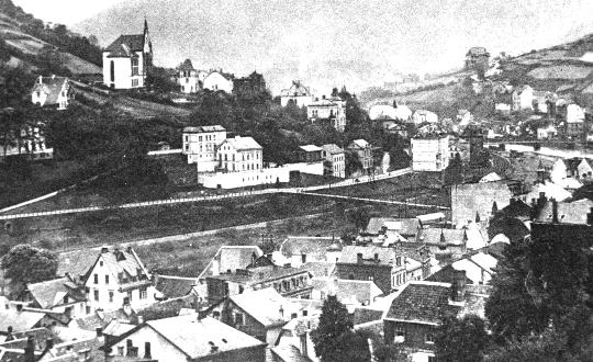 Altena 1903 mit dem Realgymnasiumsgebäude am Hang, Seitenansicht